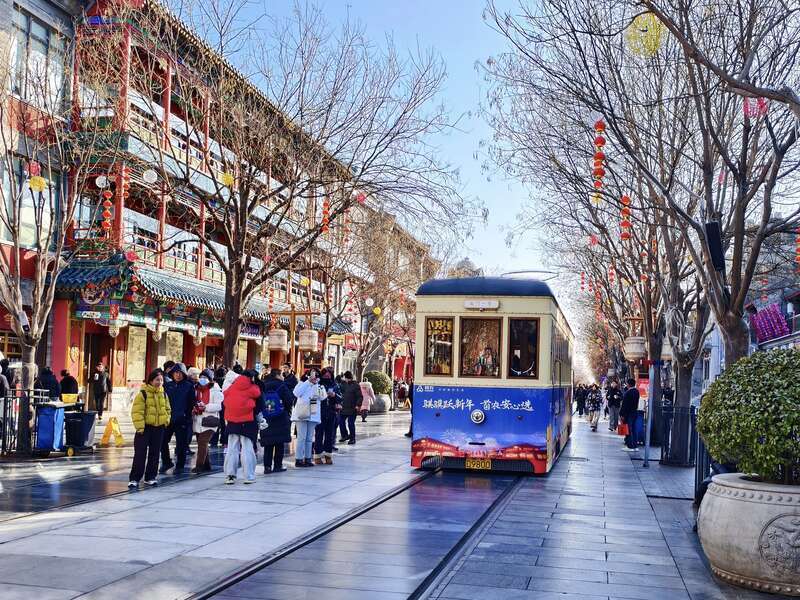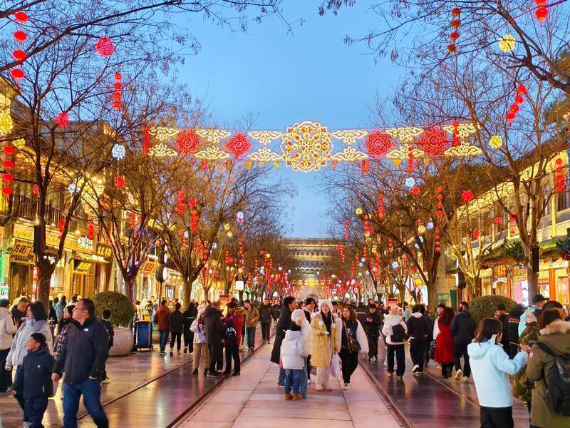 中国青年报客户端讯(中青在线记者 张胶 郭艳丽)2月2日,北京前门大街及鲜鱼口胡同张灯结彩,市民与游客穿梭其间赏灯逛市,沉浸式感受地道的京城新春氛围。