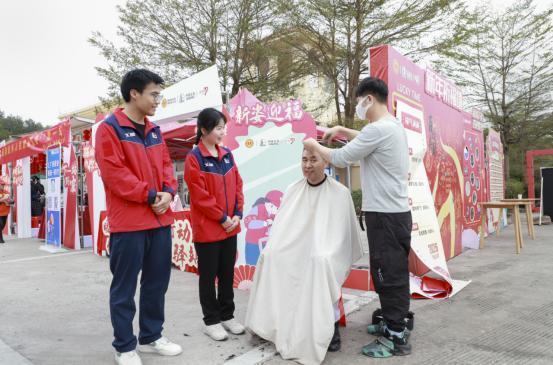 党员志愿者给返乡人员免费理发。中石化广西公司供图